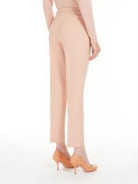 DETAILS Classic Max Mara trousers distinguished by a fitted line with regular waist and cropped at the ankle. Made of soft, compact viscose jersey, finished with slant pockets on the sides and trouser crease on the leg. Fastening with wide waistband, flap with zip and small hook. COMPOSITION AND CARE 84% viscose, 11% polyamide, 5% elastane. Do not wash; do not bleach; do not tumble dry; cool iron; professionally dry clean perchloroethylene - mild process; do not wet clean.; protect buttons before washing. Distributed by Max Mara S.r.l., registered office in Reggio Emilia (Italy), Via Giulia Maramotti 4, 42124 (IT)