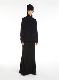 DETAILS Fine wool and cashmere blend turtleneck sweater featuring an irregular ribbed knit and long, low-set sleeves. Straight-cut style featuring an oversized volume, completed with ribbed trims and small side slits at the hem. COMPOSITION AND CARE 70% wool, 30% cashmere. Hand wash cold; do not bleach; do not tumble dry; flat drying in the shade; cool iron; professionally dry clean perchloroethylene - mild process; do not wet clean.; iron with a cloth between.; using neutral detergent. Distributed by Max Mara S.r.l., registered office in Reggio Emilia (Italy), Via Giulia Maramotti 4, 42124 (IT)