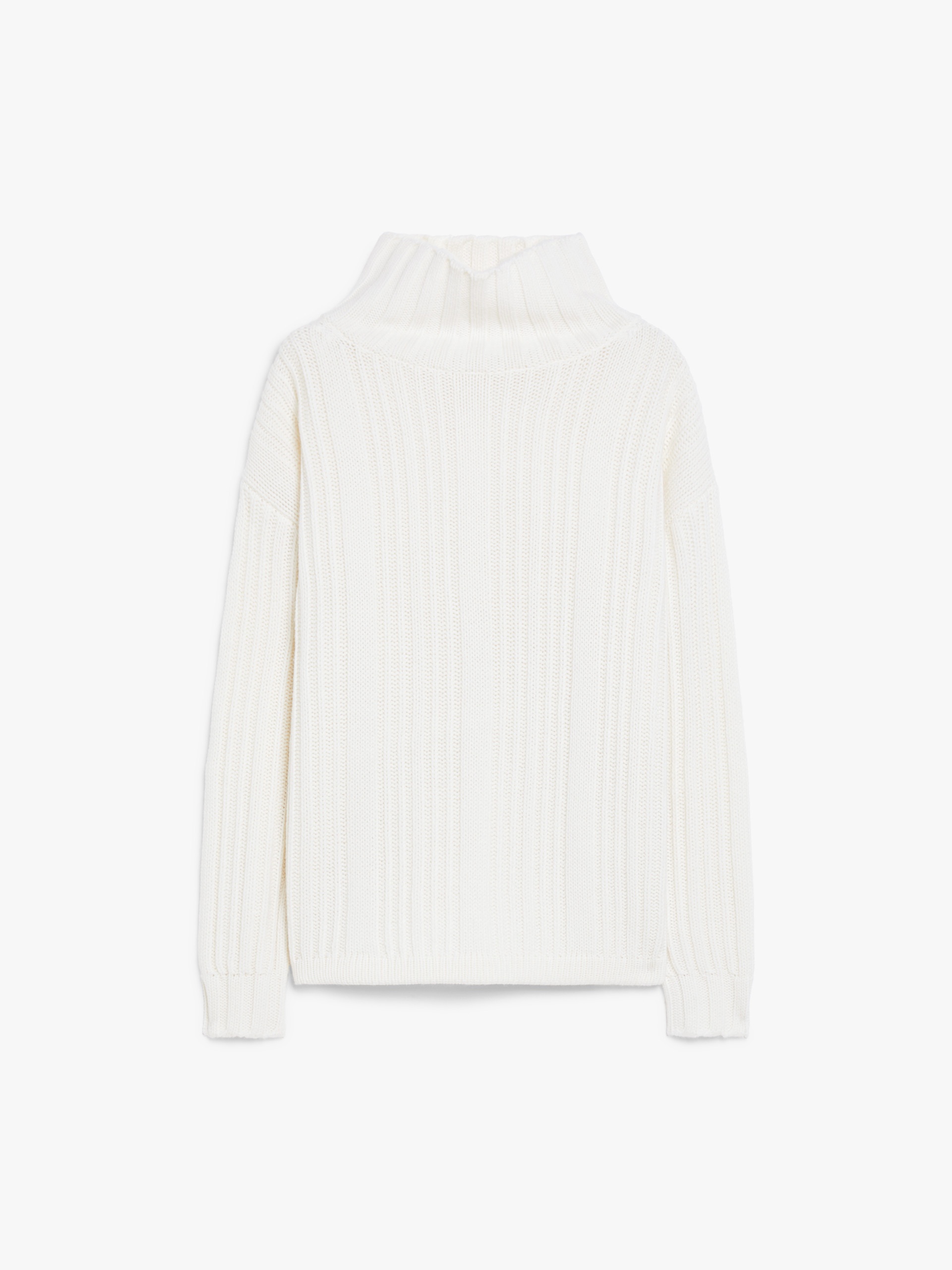 DETAILS Fine wool and cashmere blend turtleneck sweater featuring an irregular ribbed knit and long, low-set sleeves. Straight-cut style featuring an oversized volume, completed with ribbed trims and small side slits at the hem. COMPOSITION AND CARE 70% wool, 30% cashmere. Hand wash cold; do not bleach; do not tumble dry; flat drying in the shade; cool iron; professionally dry clean perchloroethylene - mild process; do not wet clean.; iron with a cloth between.; using neutral detergent. Distributed by Max Mara S.r.l., registered office in Reggio Emilia (Italy), Via Giulia Maramotti 4, 42124 (IT)