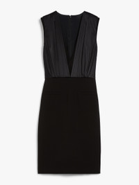 DETAILS Sleeveless midi dress, made of lightweight cady with a V-shaped bodice lined in silk satin and a gathered motif on the front and back. Lined style with a pencil skirt and centre slit at the back, side inset pockets and a motif of fake horizontal welt pockets on the front. Invisible zip fastening on the back. COMPOSITION AND CARE Fabric 64% triacetate, 36% polyester; fabric 2 100% silk; lining 85% acetate, 10% silk, 5% polyamide. Do not wash; do not bleach; do not tumble dry; cool iron; professionally dry clean perchloroethylene - mild process; do not wet clean.; iron with a cloth between. Distributed by Max Mara S.r.l., registered office in Reggio Emilia (Italy), Via Giulia Maramotti 4, 42124 (IT)