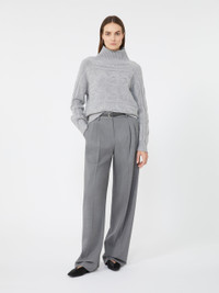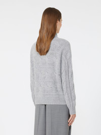 DETAILS High-neck sweater distinguished by a signature horizontal cable-knit detailing throughout. Its relaxed silhouette ensures exceptional comfort and freedom of movement. Wool and cashmere yarn sweater Comfort fit with soft, relaxed shaping High funnel neckline Long low set-in sleeves Rib-knit cuffs and hem Straight, finished hemline COMPOSITION AND CARE 80% wool, 20% cashmere. Hand wash cold (40°c max); do not bleach; do not tumble dry; flat drying in the shade; cool iron; professionally dry clean perchloroethylene - mild process; do not wet clean.; iron with a cloth between.; using neutral detergent. Distributed by Max Mara S.r.l., registered office in Reggio Emilia (Italy), Via Giulia Maramotti 4, 42124 (IT)
