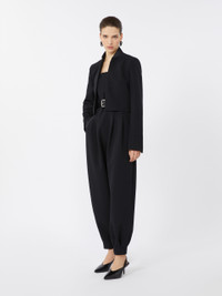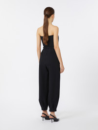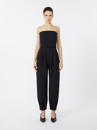 DETAILS Bustier jumpsuit with sculpted bodice and figure-defining seams and darts. Bonded stretch sable jumpsuit Wide trousers secured at the bottom Invisible zip fastening at the back In-seam side pockets Two darts on the front and at the bottom Matching belt with covered buckle Half-lined COMPOSITION AND CARE Fabric 90% polyester, 10% elastane; upper lining 100% cotton. Do not wash; do not bleach; do not tumble dry; cool iron; professionally dry clean perchloroethylene - mild process; do not wet clean. Distributed by Max Mara S.r.l., registered office in Reggio Emilia (Italy), Via Giulia Maramotti 4, 42124 (IT)