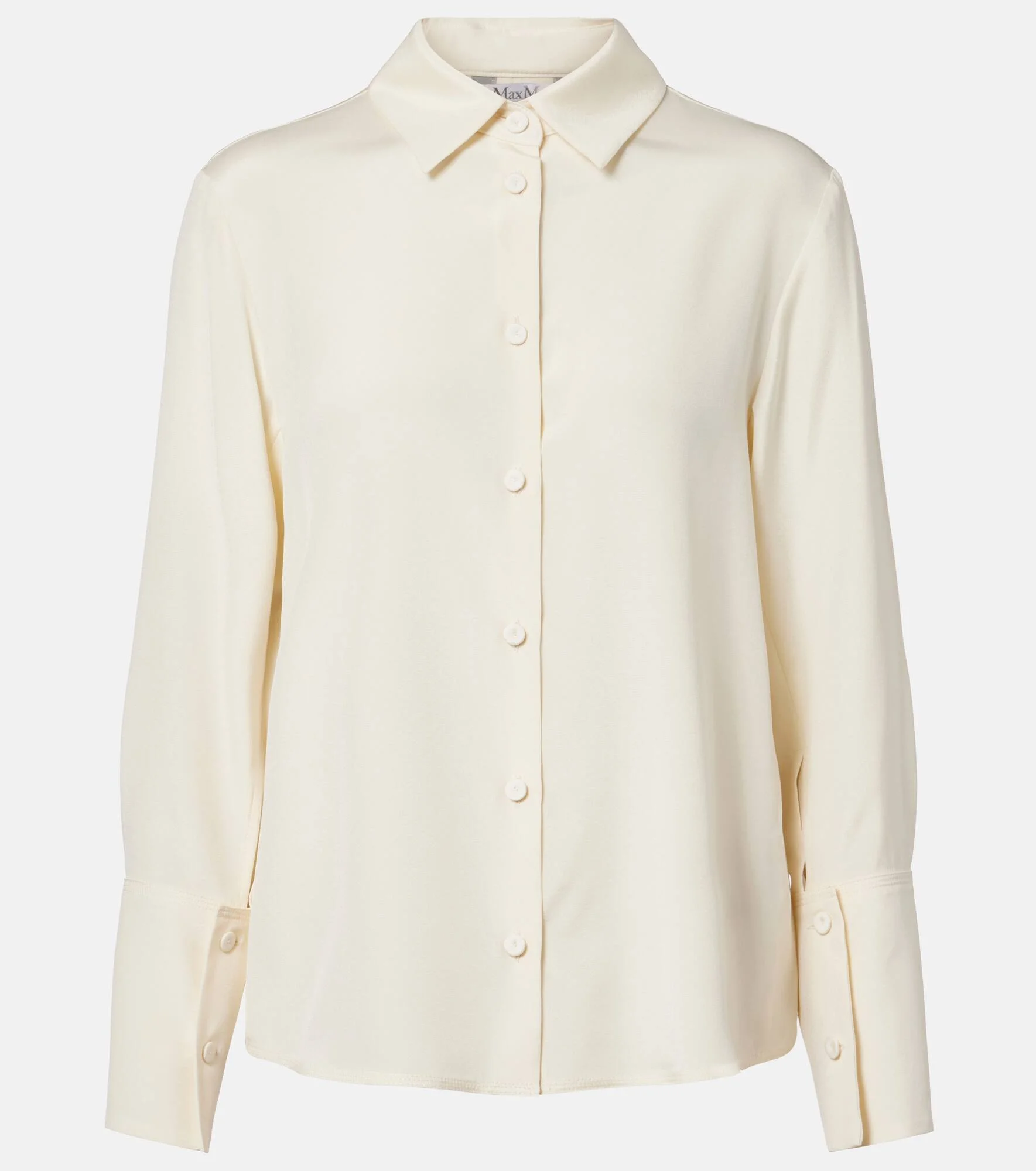 Max Mara's easy elegance knows no bounds with the Voliera shirt. Crafted from lustrous silk-blend cady, the design is cut to a relaxed silhouette that can be both dressed up or down with ease. Product Details - Material: 93% silk, 7% elastane - Care instructions: dry clean - Made in Italy - Color: white - Designer color name: Avorio - Item color: white - Collar: classic (Straight point) - Cuff: buttoned - Closure: buttoned front - Item number: P01124865 Size & Fit - True to size - Straight fit - Non-stretchy fabric - Falls to the hip - The model seen in the picture is 178cm-5'10" and wearing a size DE 34