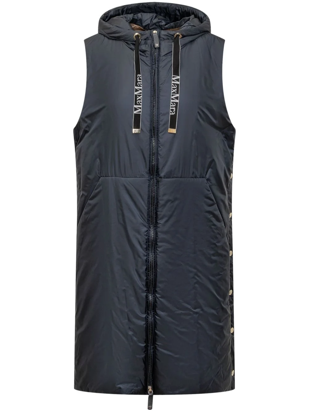 water-repellent canvas gilet Highlights - Midnight blue - Front two-way zip fastening - Side press-stud fastening - Two front pouch pockets - Drawstring hood Made in Italy Composition Polyester 100% Washing instructions Read Manufacturer Guidelines