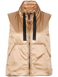 water-repellent drawstring gilet Highlights - Caramel brown - Padded design - Water-repellent - Drawstring neck - Front zip fastening - Sleeveless - Two front pouch pockets - Straight hem - Full lining Made in Italy Composition Lining: Polyester 48%, Camel Hair 48%, Silk 4% Outer: Polyester 100% Washing instructions Dry Clean Only