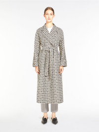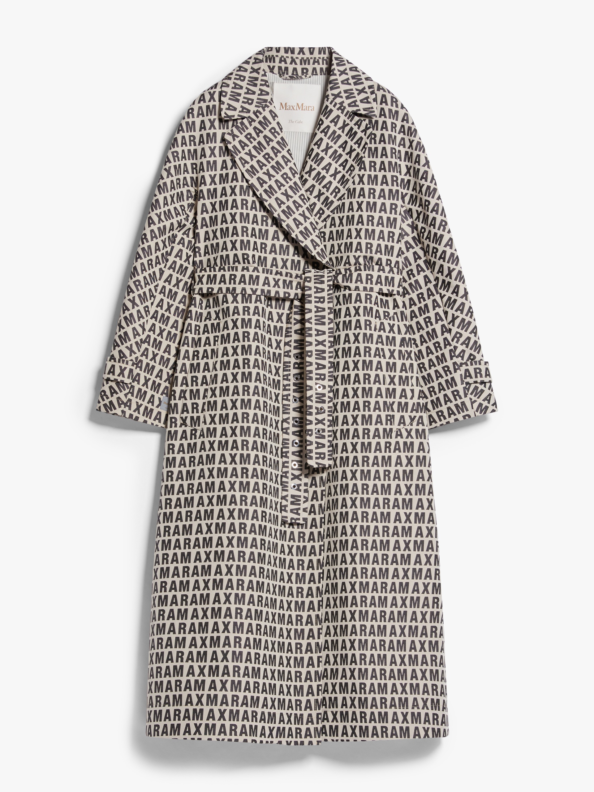 DETAILS Trench coat in water-repellent technical cotton fabric featuring an all-over jacquard logo design. The feminine, robe-style model is embellished with a lapel collar, welt pockets and cuff tab detail. Matching waist belt fastening. COMPOSITION AND CARE Fabric 51% cotton, 25% polyester, 24% nylon; lining 100% polyester. Do not wash; do not bleach; do not tumble dry; cool iron; professionally dry clean perchloroethylene - mild process; do not wet clean.; wash the belt in a net sack.; don’t iron the labels. Distributed by Max Mara S.r.l., registered office in Reggio Emilia (Italy), Via Giulia Maramotti 4, 42124 (IT)