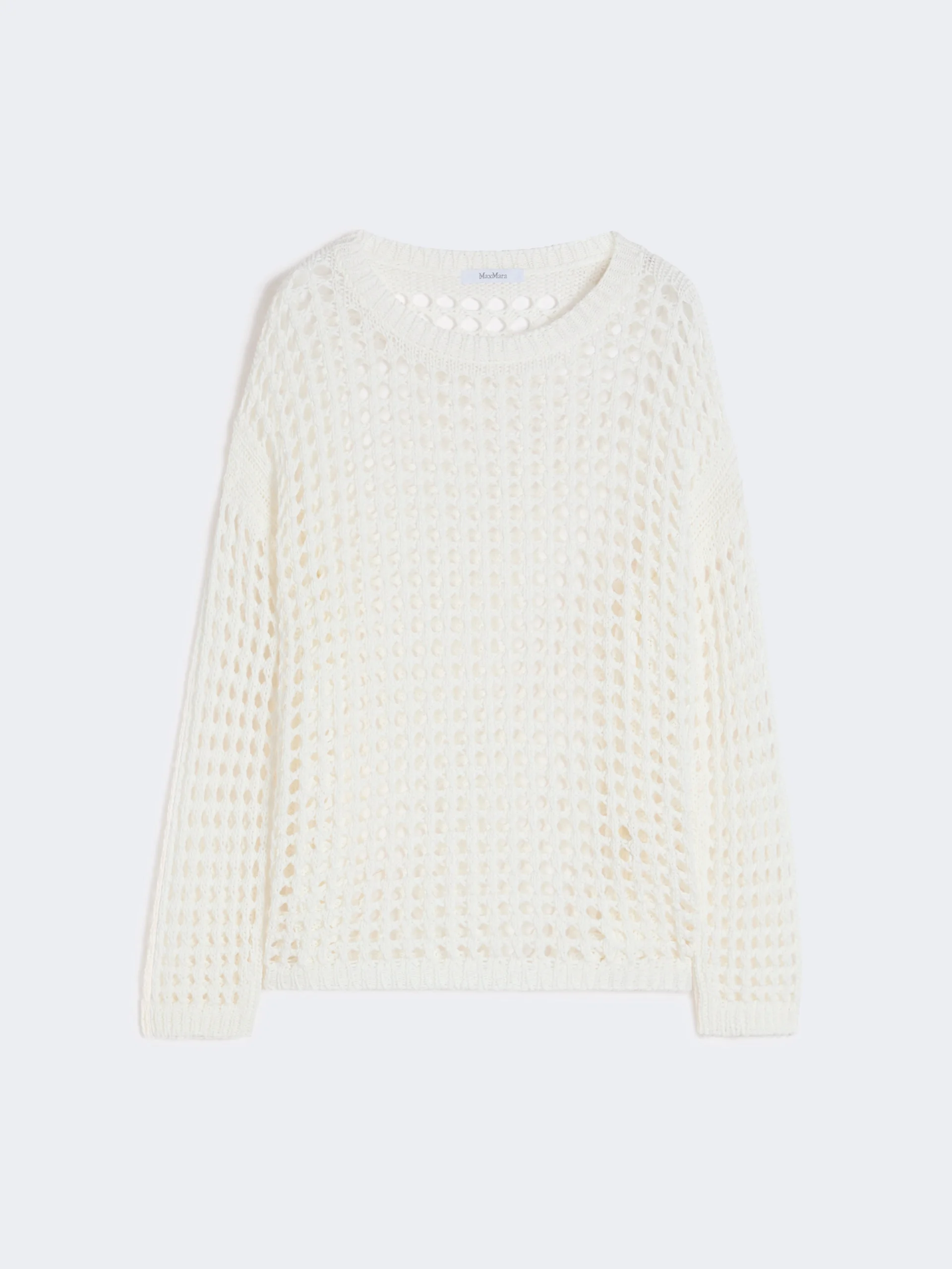 DETAILS Long-sleeved jumper, featuring a sheer-effect mesh knit. - Pure cotton webbing jumper - Straight cut. - Crew neck - Low-set sleeves - Ribbed trim COMPOSITION AND CARE 100% cotton. Hand wash cold (40°c max); do not bleach; do not tumble dry; flat drying in the shade; cool iron; professionally dry clean perchloroethylene - mild process; do not wet clean.; iron with a cloth between.; using neutral detergent. Distributed by Max Mara S.r.l., registered office in Reggio Emilia (Italy), Via Giulia Maramotti 4, 42124 (IT) Collection: Max Mara Product code: 1361076906001 - MXPFEBE