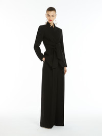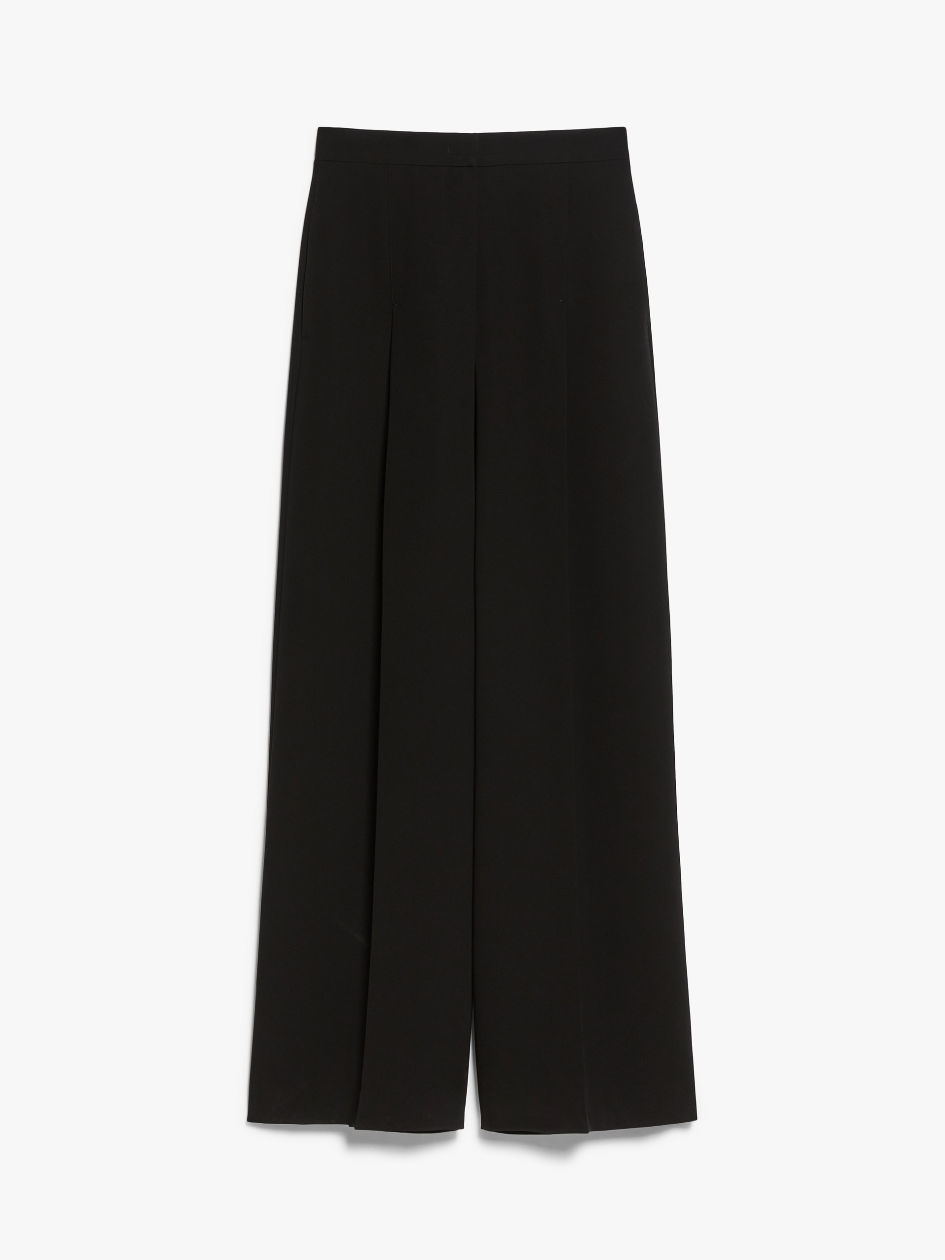 DETAILS High-waisted trousers made of compact cady. The garment features a wide leg silhouette, stitched pleats at the waist and trouser crease. Side inset pockets. Fastening with wide waistband, flap with zip and small hook. COMPOSITION AND CARE 64% triacetate, 36% polyester. Machine wash cold delicate cycle; do not bleach; do not tumble dry; line drying in the shade; cool iron; professionally dry clean perchloroethylene - mild process.; protect buttons before washing. Distributed by Max Mara S.r.l., registered office in Reggio Emilia (Italy), Via Giulia Maramotti 4, 42124 (IT)