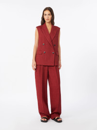 DETAILS Trousers featuring a wide-leg silhouette with double-pleat on the front. - Faded pure linen twill trousers - Wide leg with - High-cut waistband with a fly-covered zip and hook-and-bar fastening - Slant side pockets with tailored stitching - Pressed pleat detail and a matching waist belt - Sewn darts on the back of the waist COMPOSITION AND CARE Trousers fabric 100% flaxlinen; with belt in polyester with polyurethane coating. Trousers: machine wash cold delicate cycle; do not bleach; do not tumble dry; line drying in the shade; cool iron; professionally dry clean perchloroethylene - mild process. Belt: do not wash; do not bleach; do not tumble dry; do not iron; do not dry clean; do not wet clean. Distributed by Max Mara S.r.l., registered office in Reggio Emilia (Italy), Via Giulia Maramotti 4, 42124 (IT) Collection: Studio Product code: 6131036206035 - MSTSUMERO