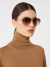 DETAILS Vintage geometric design, reinterpreted in Max Mara style. These sunglasses stand out thanks to their light profiles and iconic details. - Metallic sunglasses - Adjustable nose pads - Thin nose pads and temples with acetate tips - Maxim detail on the bridge - Max Mara logo on the side of the temples - Suitable for varifocal lenses COMPOSITION AND CARE Metal. Distributed by Max Mara S.r.l., registered office in Reggio Emilia (Italy), Via Giulia Maramotti 4, 42124 (IT) Collection: Eyewear Product code: 4806095606002 - MILLER4