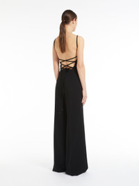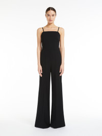 DETAILS Sleeveless tuxedo jumpsuit in elegant heavy cady fabric. Style with a fluid silhouette, featuring a lingerie-style bustier with thin shoulder straps that cross over on the bare back and wide trousers with satin side stripes in the same shades. Embellished with slant pockets at the sides, a seam at the waist and trouser crease. Invisible zip fastening on the back. COMPOSITION AND CARE Fabric 70% triacetate, 30% polyester; upper lining 63% acetate, 37% viscose. Do not wash; do not bleach; do not tumble dry; cool iron; professionally dry clean perchloroethylene - mild process; do not wet clean. Distributed by Max Mara S.r.l., registered office in Reggio Emilia (Italy), Via Giulia Maramotti 4, 42124 (IT)