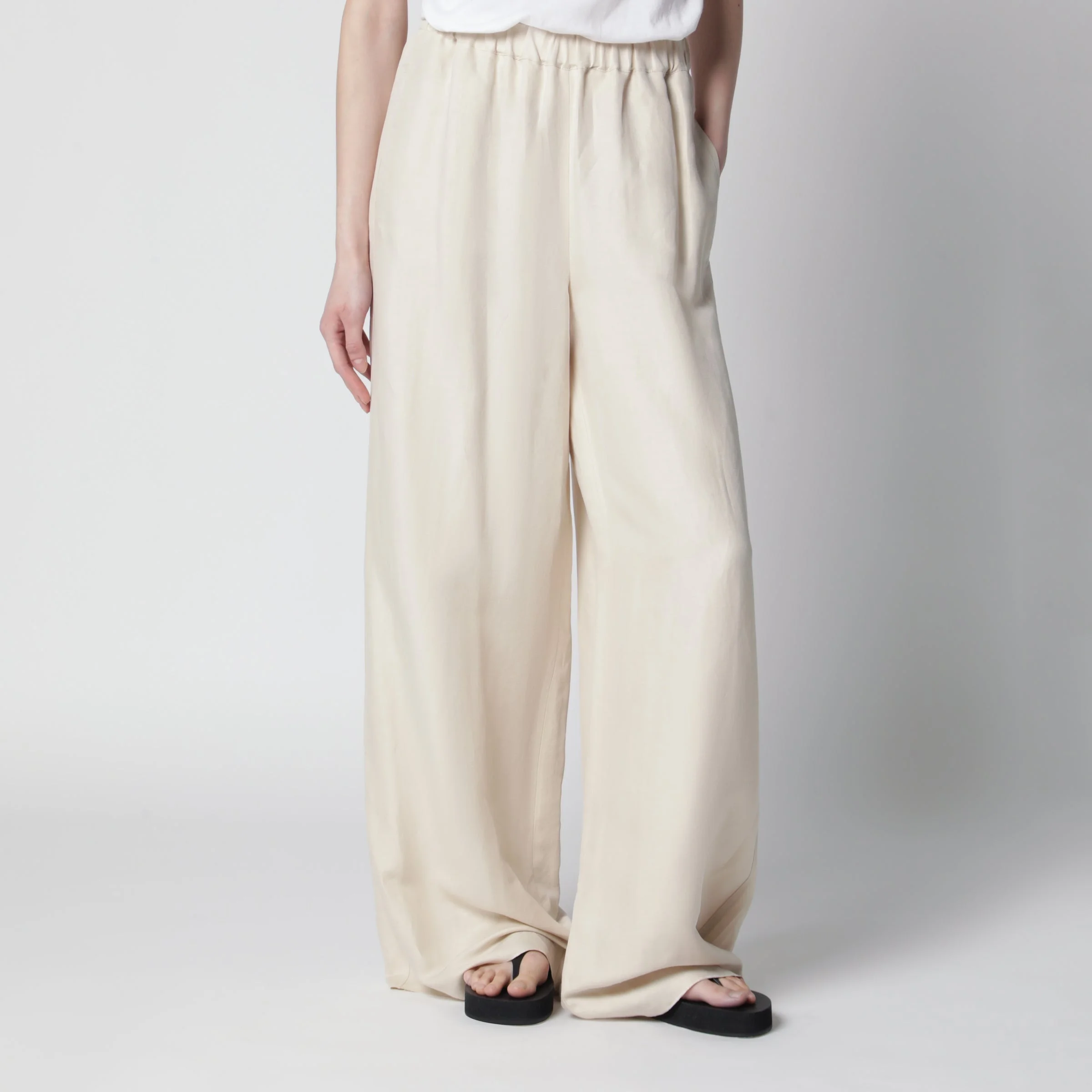 Linen and silk wide-leg trousers by Max Mara.• Color: Beige• Washed linen and silk twill• Wide leg• Elasticated waist• Side slit pockets