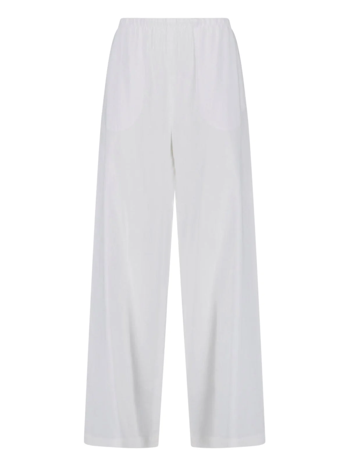 - WIDE LEG PANTS "DESTINO" MAX MARA IN WHITE LINEN BLEND - GATHERED ELASTICIZED WAIST - TWO SIDE POCKETS - WIDE LEG PRODUCT INFO PRODUCT CODE 2611131029600001 COMPOSITION: 62% LINEN, 35% VISCOSE, 3% ELASTANE SIZE AND FIT: LOOSE FIT MADE IN: ITALY