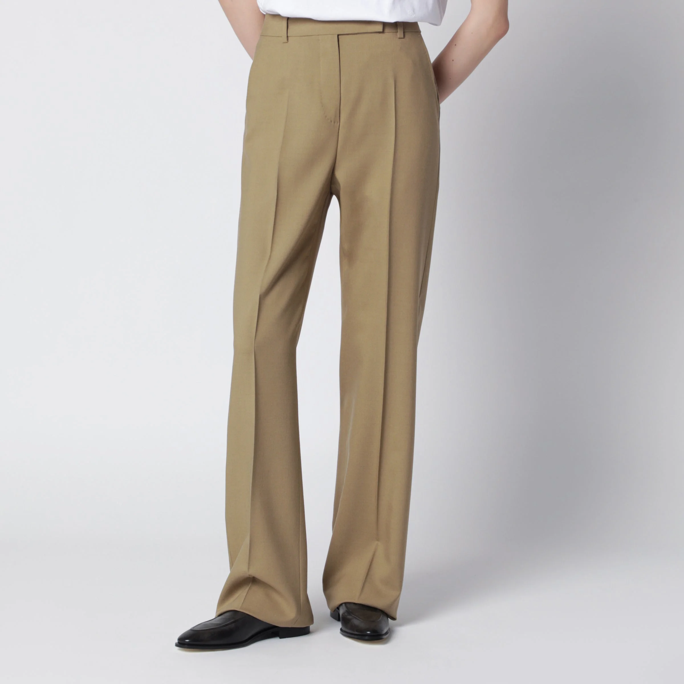 Max Mara wide-leg trousers in wool and silk• Color: Camel• Regular fit• High waistband with zip fly flap and hook closure• Side pockets• Back horizontal welt pockets with button• Back darts sewn at the waist