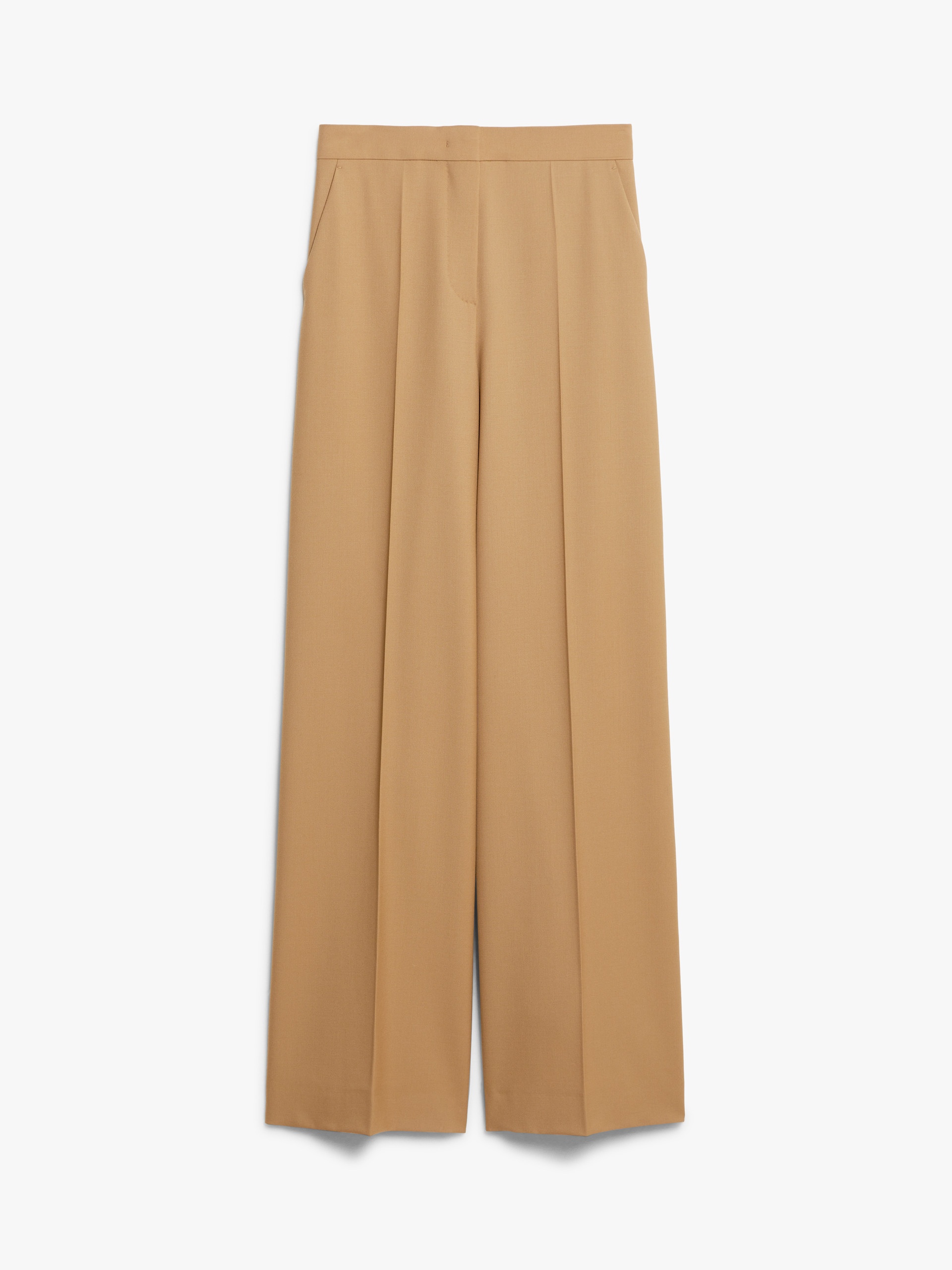 DETAILS Palazzo trousers with a wide line, made of warm. pure wool gabardine. The construction features slant pockets on the sides, trouser crease on the legs and front closure with wide waistband tab, zip fly and hook. COMPOSITION AND CARE 100% virgin wool. Do not wash; do not bleach; do not tumble dry; cool iron; professionally dry clean perchloroethylene - mild process; do not wet clean.; protect buttons before washing. Distributed by Max Mara S.r.l., registered office in Reggio Emilia (Italy), Via Giulia Maramotti 4, 42124 (IT)