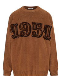 embroidered wool sweater Highlights - Brown - Wool cashmere blend - Crew neck - Applique detail - Velvet embellishment Imported Composition Wool 70%, Cashmere 30% Washing instructions Read Manufacturer Guidelines