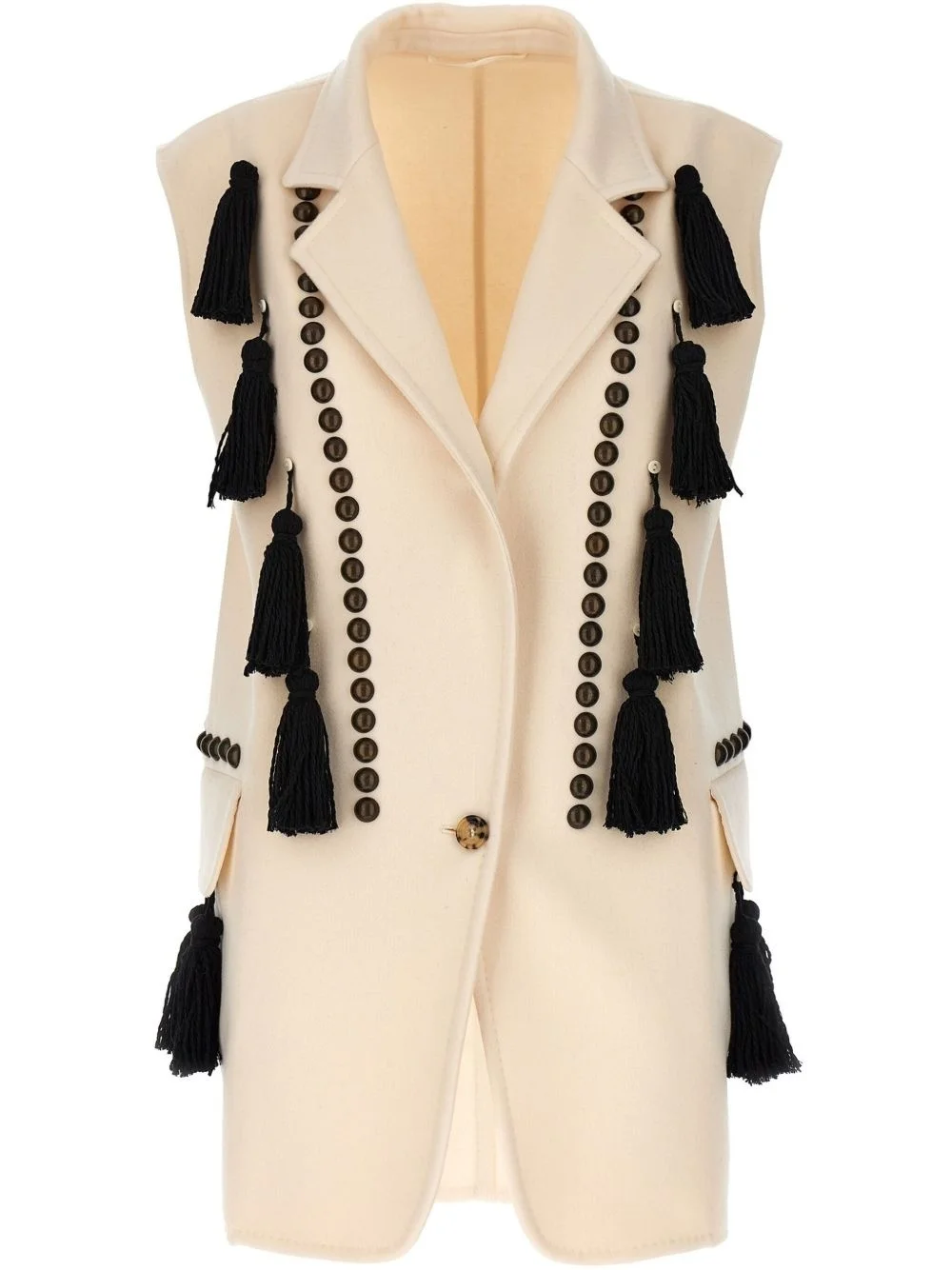 Arco waistcoat Highlights - Beige - Front button fastening - Tassel detail - Sleeveless Made in Italy Composition Virgin Wool 90%, Cashmere 10%