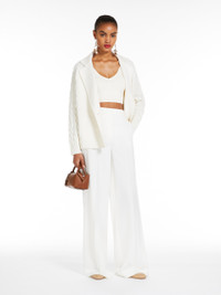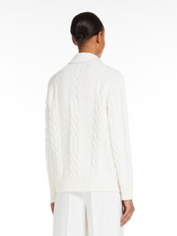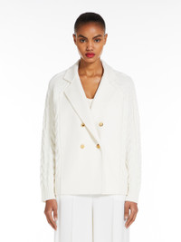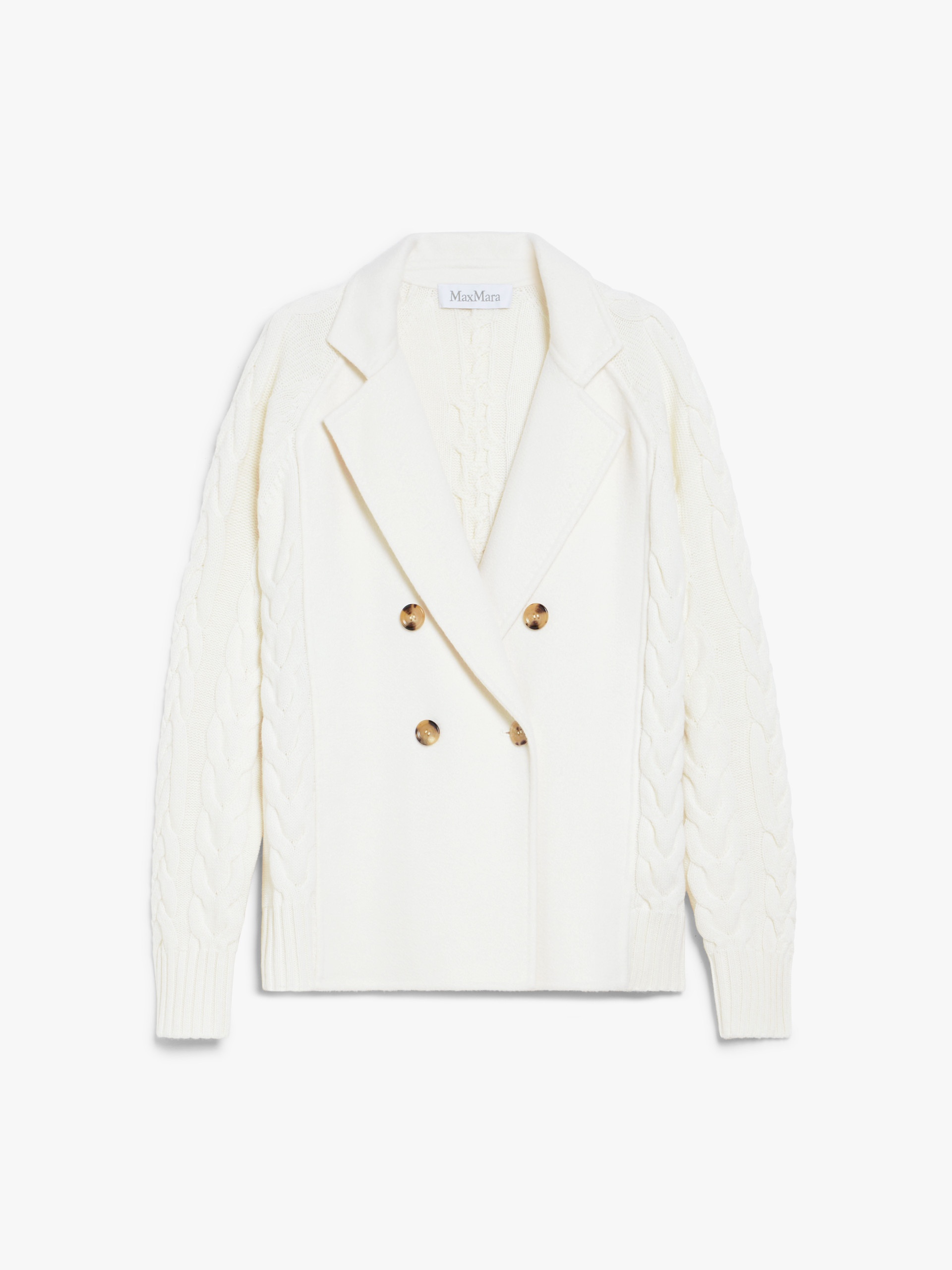 DETAILS Double-breasted pea coat jacket in luxurious wool and cashmere fabric. The sleeves and back come in a matching knit, with a combination of cabling and ribbed textures to give movement and thickness to the garment. Boxy garment with a lapel collar, ribbed cuffs and hem. Horn button fastening. COMPOSITION AND CARE Knitted fabric 70% wool, 30% cashmere; fabric 90% wool, 10% cashmere. Do not wash; do not bleach; do not tumble dry; cool iron; professionally dry clean perchloroethylene - mild process; do not wet clean.; iron with a cloth between. Distributed by Max Mara S.r.l., registered office in Reggio Emilia (Italy), Via Giulia Maramotti 4, 42124 (IT)