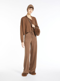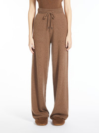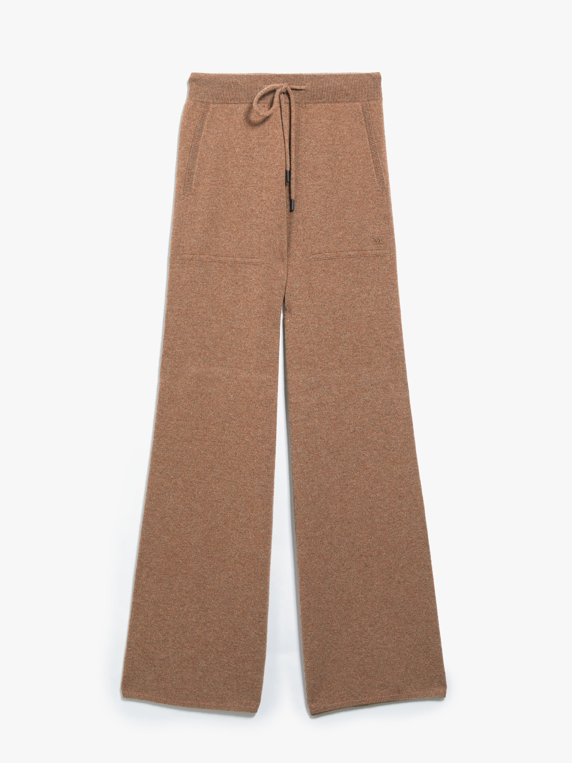 DETAILS Relaxed fit trousers in fine wool and cashmere yarn with workwear-inspired pockets and ribbed elastic waistband with drawstring. Finished with Monogram patch in matching-colour thread applied on the left pocket, and a straight, ribbed hem. Length: 115 cm COMPOSITION AND CARE Knitted fabric 70% wool, 30% cashmere; - exclusive of decoration. Hand wash cold; do not bleach; do not tumble dry; flat drying in the shade; cool iron; professionally dry clean perchloroethylene - mild process; do not wet clean.; iron with a cloth between.; using neutral detergent. Distributed by Max Mara S.r.l., registered office in Reggio Emilia (Italy), Via Giulia Maramotti 4, 42124 (IT)