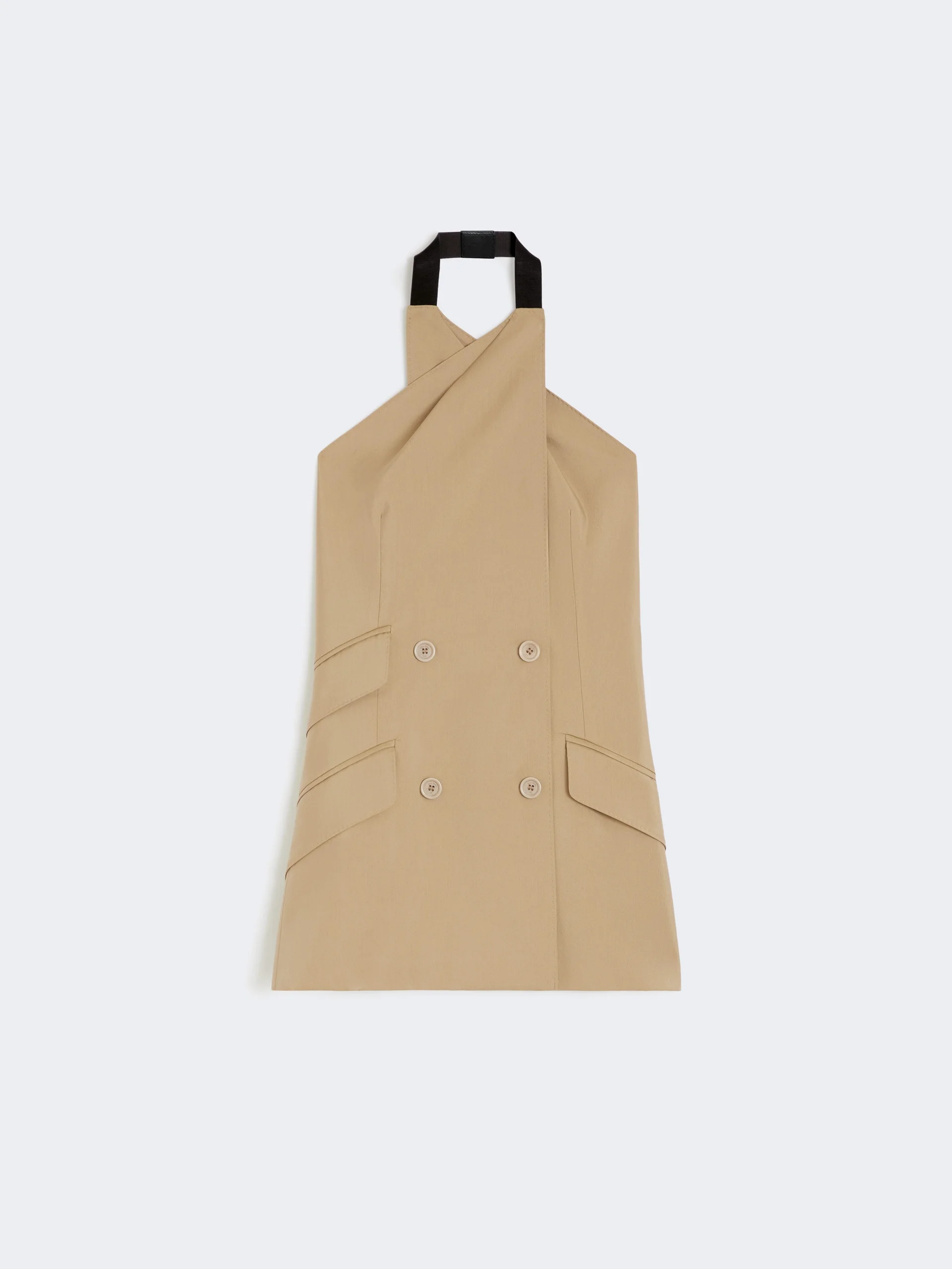 DETAILS Sleeveless jacket, distinguished by a tailored construction with open back. - Regular fit - Lightweight, wool and silk poplin jacket - Cross-over crew neck at the front - Double-breasted fastening with buttons - Elastic strap with snap button at the back of the neckline - Double-welt pockets with flap on the sides - Third pocket on the right side - Side slits at the back - Lined in stretch Monogram fabric COMPOSITION AND CARE Fabric 75% virgin wool, 25% silk; lining 65% acetate, 35% polyester; - exclusive of decoration. Do not wash; do not bleach; do not tumble dry; cool iron; professionally dry clean perchloroethylene - mild process; do not wet clean.; put this item into a string bag before washing it.; do not iron the decoration.; turn the articles inside out before washing.; contains non-textile parts of animal origin. Distributed by Max Mara S.r.l., registered office in Reggio Emilia (Italy), Via Giulia Maramotti 4, 42124 (IT) Collection: Runway Product code: 1281146306007 - MXSNURAGHE