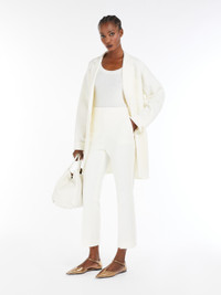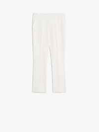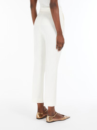 DETAILS Slim fit trousers in luxurious pure wool double crepe. Style cropped above the ankle, line slightly flared at the hem, with slant pockets on the sides and trouser crease on the leg. Side zip fastening. COMPOSITION AND CARE Fabric 96% virgin wool, 4% elastane; - except joining thread. Do not wash; do not bleach; do not tumble dry; cool iron; professionally dry clean perchloroethylene - mild process; do not wet clean. Distributed by Max Mara S.r.l., registered office in Reggio Emilia (Italy), Via Giulia Maramotti 4, 42124 (IT)