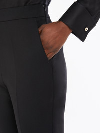 DETAILS Slim fit trousers in luxurious pure wool double crepe. Style cropped above the ankle, line slightly flared at the hem, with slant pockets on the sides and trouser crease on the leg. Side zip fastening. COMPOSITION AND CARE Fabric 96% virgin wool, 4% elastane; - except joining thread. Do not wash; do not bleach; do not tumble dry; cool iron; professionally dry clean perchloroethylene - mild process; do not wet clean. Distributed by Max Mara S.r.l., registered office in Reggio Emilia (Italy), Via Giulia Maramotti 4, 42124 (IT)