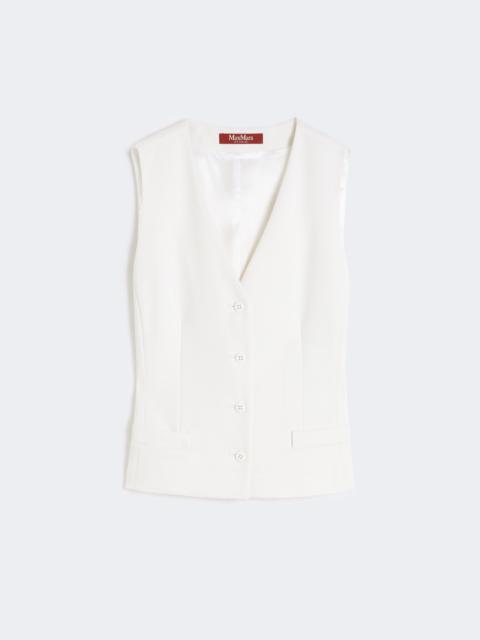 DETAILS Vest with a feminine silhouette, slightly fitted at the waist and with a small central slit on the back. - Gilet in comfortable wool satin crepe fabric - V-neckline - Visible button fastening on the front - Horizontal maxi-welt pockets on the front - Adjustable strap at the back - Lined COMPOSITION AND CARE Fabric 100% virgin wool; lining 70% acetate, 30% polyester. Do not wash; do not bleach; do not tumble dry; cool iron; professionally dry clean perchloroethylene - mild process; do not wet clean.; wash the garment while it is fastened.; do not iron the buttons.; protect buttons before washing.; turn the articles inside out before washing. Distributed by Max Mara S.r.l., registered office in Reggio Emilia (Italy), Via Giulia Maramotti 4, 42124 (IT) Collection: Studio Product code: 6151016106047 - MSTMADIA