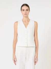 DETAILS Vest with a feminine silhouette, slightly fitted at the waist and with a small central slit on the back. - Gilet in comfortable wool satin crepe fabric - V-neckline - Visible button fastening on the front - Horizontal maxi-welt pockets on the front - Adjustable strap at the back - Lined COMPOSITION AND CARE Fabric 100% virgin wool; lining 70% acetate, 30% polyester. Do not wash; do not bleach; do not tumble dry; cool iron; professionally dry clean perchloroethylene - mild process; do not wet clean.; wash the garment while it is fastened.; do not iron the buttons.; protect buttons before washing.; turn the articles inside out before washing. Distributed by Max Mara S.r.l., registered office in Reggio Emilia (Italy), Via Giulia Maramotti 4, 42124 (IT) Collection: Studio Product code: 6151016106010 - MSTMADIA