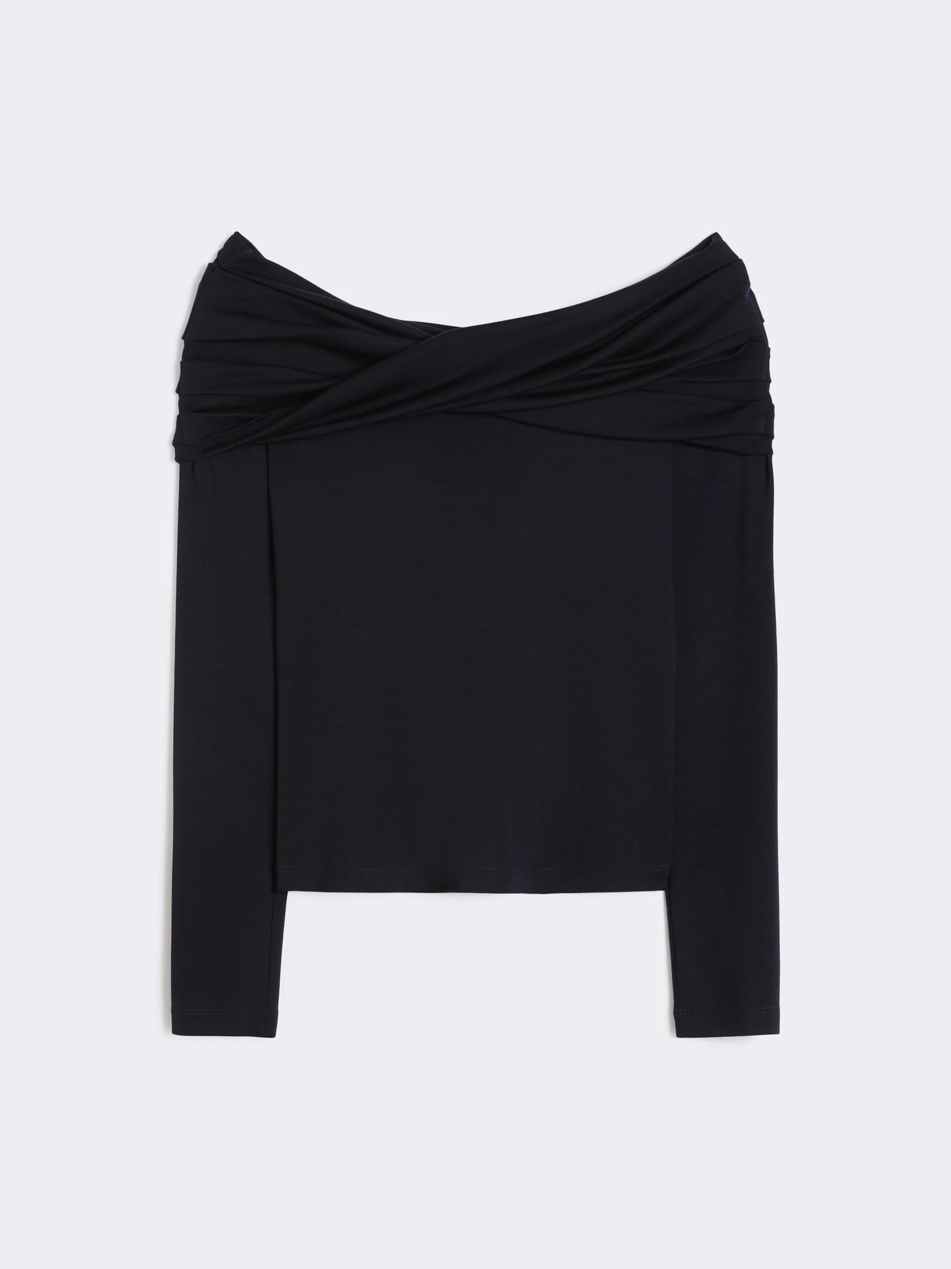 DETAILS Off-shoulder top with draped torchon band on the front. - Top in pure wool interlock - Figure-hugging - Bandeau neckline - Long glove-style sleeves COMPOSITION AND CARE 100% virgin wool. Hand wash cold (40°c max); do not bleach; do not tumble dry; drip line drying in the shade; cool iron; professionally dry clean perchloroethylene - mild process; do not wet clean.; iron with a cloth between.; using neutral detergent.; don’t rub.; turn the articles inside out before washing.; to be ironed on reverse. Distributed by Max Mara S.r.l., registered office in Reggio Emilia (Italy), Via Giulia Maramotti 4, 42124 (IT) Collection: Max Mara Product code: 1941026806004 - MXPORAFO
