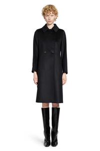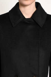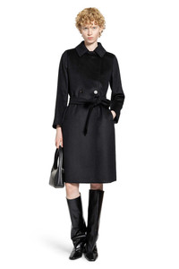 DESCRIPTION - Black - Pure wool broadcloth - Collar - Double-breasted - Button closure - Side pockets - Adjustable and removable self-tie belt - Back split - Collar can be be worn open with visible lapels or - buttoned up DETAILS - Made in: Italy - Composition: 100% Virgin Wool - Model code: 2526016051600 013 - Item ID: 9824072368470 SIZE & FIT Model wears size 38 Model Height 180 cm Bust 82 cm Waist 58 cm Hips 90 cm