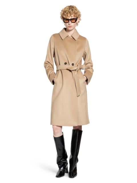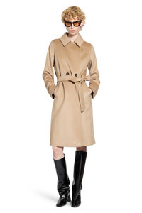 DESCRIPTION - Camel - Pure wool broadcloth - Collar - Double-breasted - Button closure - Side pockets - Adjustable and removable self-tie belt - Back split - Collar can be be worn open with visible lapels or - buttoned up DETAILS - Made in: Italy - Composition: 100% Virgin Wool - Model code: 2526016051600 006 - Item ID: 9824072139094 SIZE & FIT Model wears size 38 Model Height 180 cm Bust 82 cm Waist 58 cm Hips 90 cm