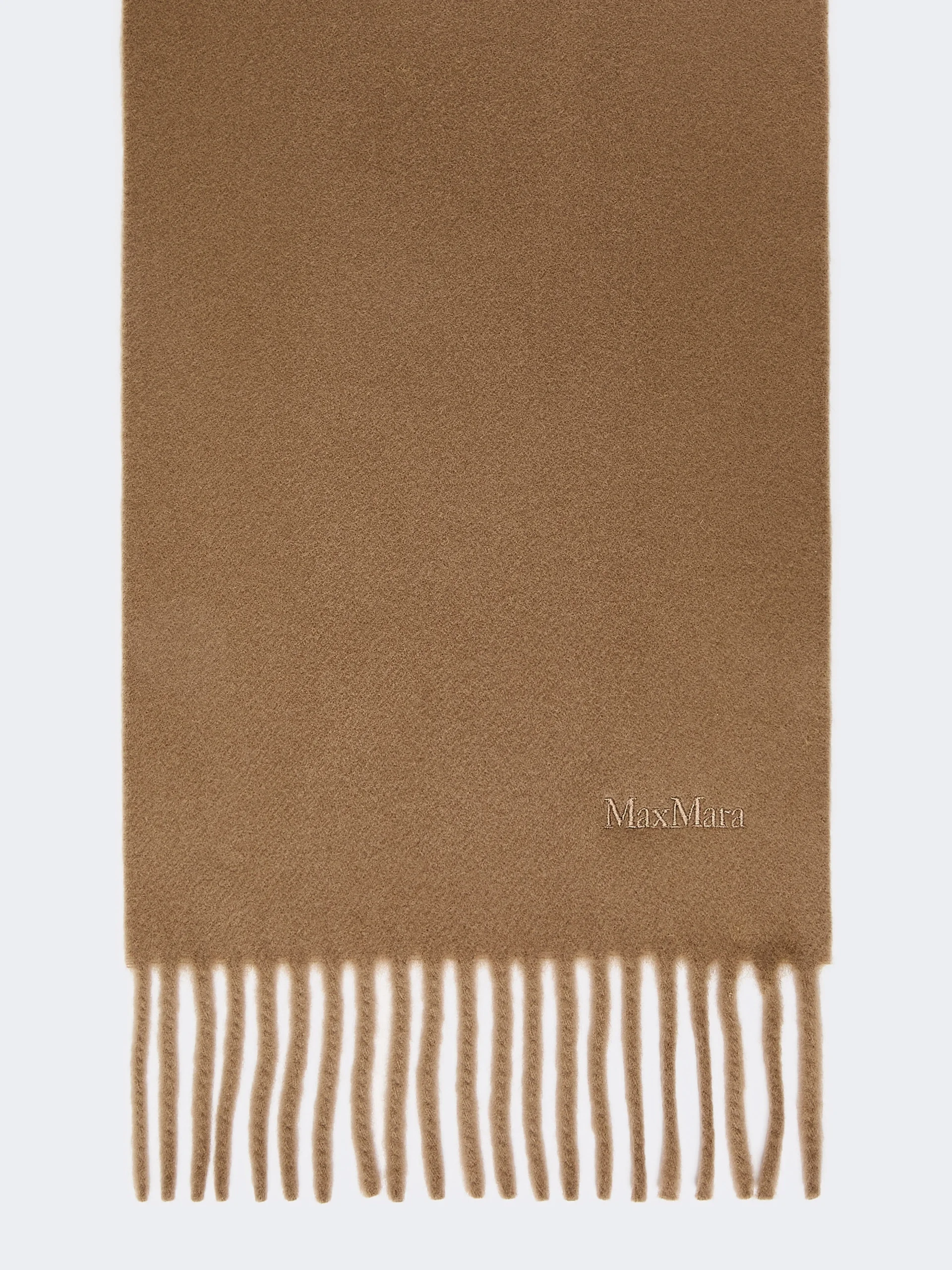 DETAILS Long scarf finished with tonal Max Mara logo embroidered on the hem. - Scarf in yarn-dyed pure wool - Fringed motif on the short sides - Measurements: 25 x 208 cm COMPOSITION AND CARE 100% wool. Do not wash; do not bleach; do not tumble dry; cool iron; professionally dry clean perchloroethylene - mild process; do not wet clean. Distributed by Max Mara S.r.l., registered office in Reggio Emilia (Italy), Via Giulia Maramotti 4, 42124 (IT) Collection: MaxMara Accessori Product code: 4541236106098 - MXAFRAGORE