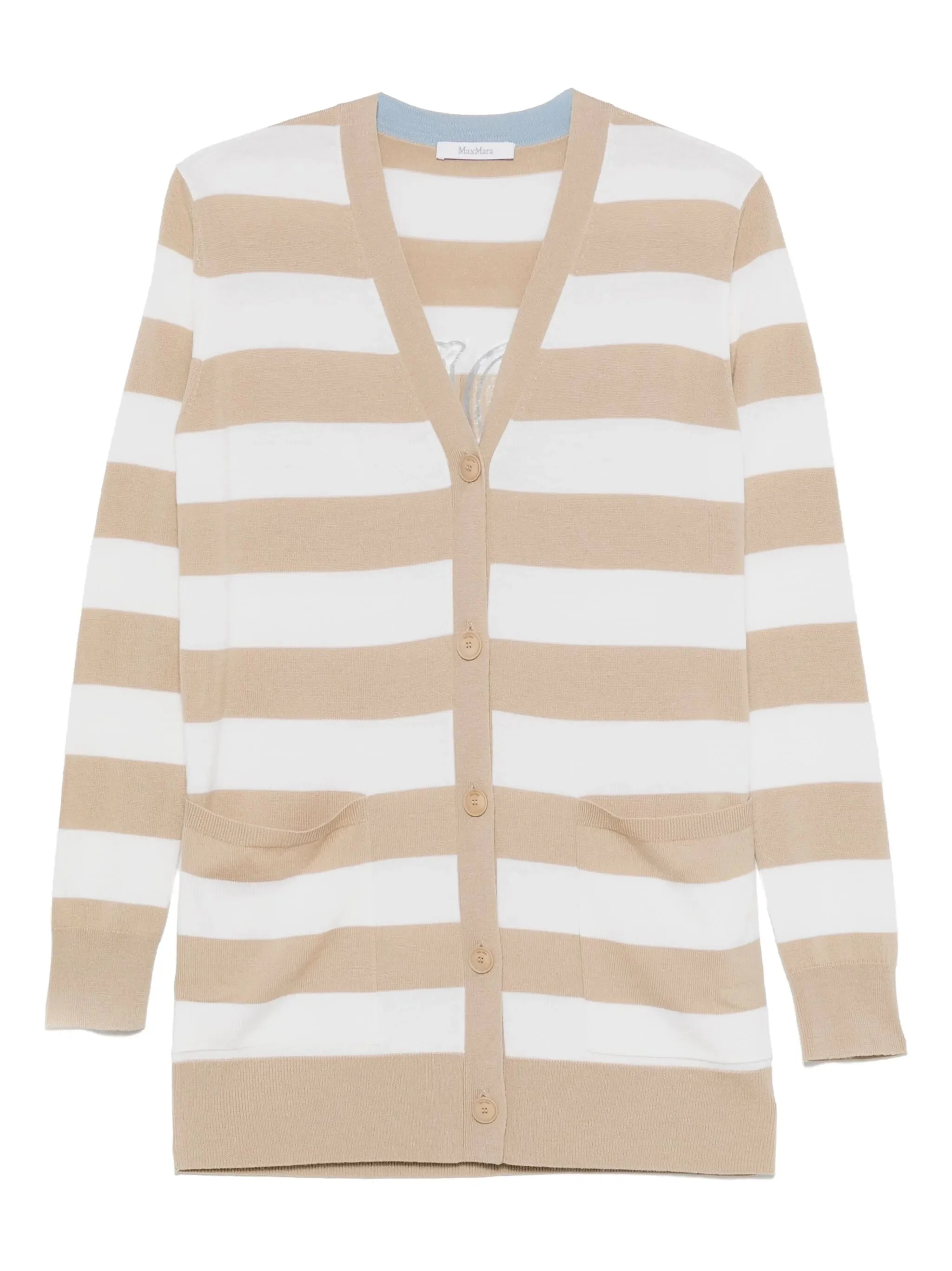 beige front button fastening V-neck long sleeves stripe detailing - Color: WHITE/NEUTRALS - Made in: Bangladesh - Designer Style ID: FIEMME 022 008 Composition and care Virgin Wool: 100.0%