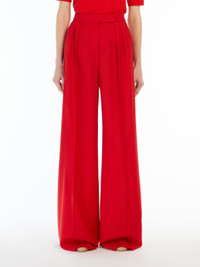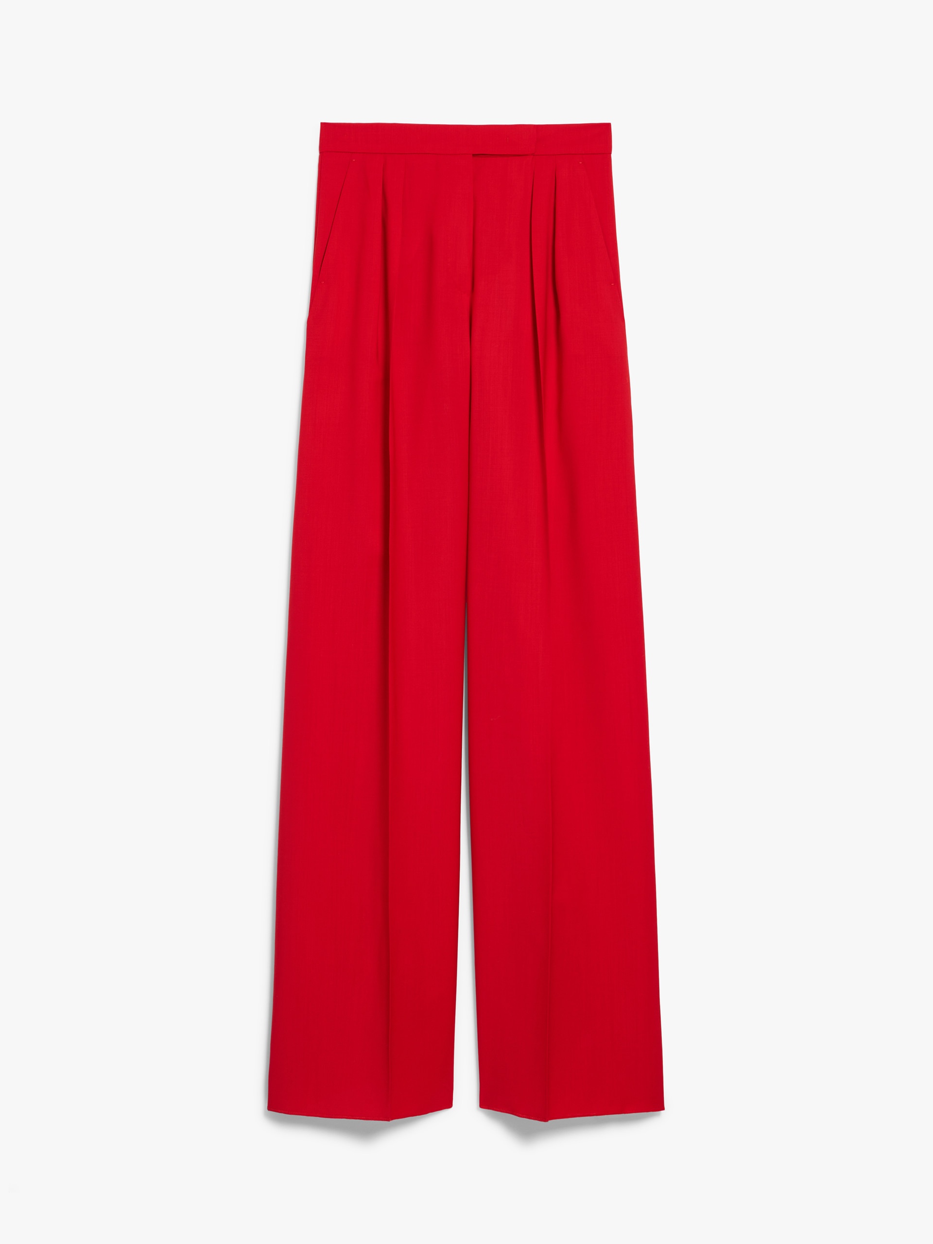 DETAILS Trousers in fine, luxurious pure wool fabric, with a wide-leg silhouette, double pleats at the waist and slant pockets on the sides. Fastening with wide waistband, flap with zip and small hook. COMPOSITION AND CARE 100% virgin wool. Machine wash cold delicate cycle; do not bleach; do not tumble dry; line drying in the shade; cool iron; professionally dry clean perchloroethylene - mild process.; protect buttons before washing. Distributed by Max Mara S.r.l., registered office in Reggio Emilia (Italy), Via Giulia Maramotti 4, 42124 (IT)