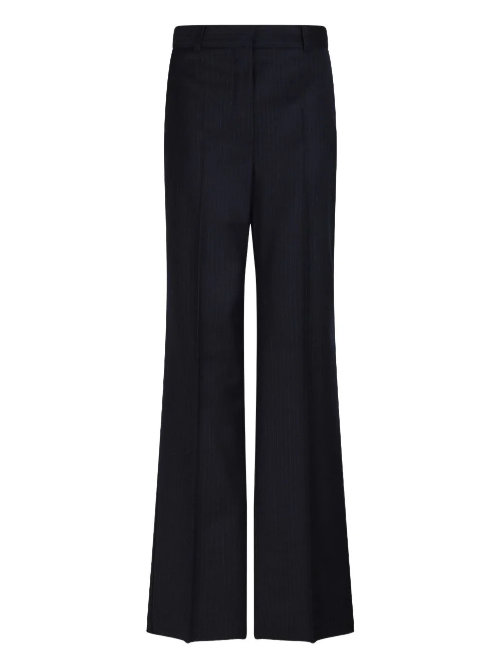 pinstriped trousers Highlights - Blue - Pinstripe pattern - Concealed front fastening - Belt loops Imported Composition Virgin Wool 99%, Elastane 1% Washing instructions Read Manufacturer Guidelines