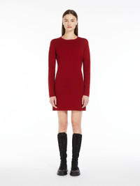 DETAILS Mini dress made of luxurious pure wool yarn in a fabric stitch knit. Style with a fitted and feminine silhouette, a round neckline and long sleeves, finished with a small on tone M Monogram embroidered patch, applied to the cuff of the left-hand sleeve COMPOSITION AND CARE Knitted fabric 100% virgin wool; - exclusive of decoration. Hand wash cold; do not bleach; do not tumble dry; flat drying in the shade; cool iron; professionally dry clean perchloroethylene - mild process; do not wet clean.; iron with a cloth between.; using neutral detergent. Distributed by Max Mara S.r.l., registered office in Reggio Emilia (Italy), Via Giulia Maramotti 4, 42124 (IT)