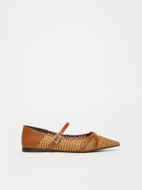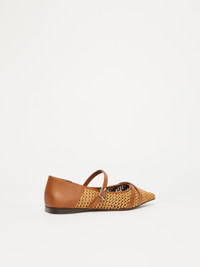 DETAILS Pointy-toe ballerinas in crochet fabric with soft, natural calf leather details, treated with a semi-gloss finish, with an uneven dyed effect. The design features crisscross straps at the toe and an adjustable instep strap. The foldable heel construction in soft leather allows the style to be converted into sabots. Nappa-leather lining and leather sole. COMPOSITION AND CARE Upper in 100% viscose; with details in calf; lining in 100% polyamide; sole in leather. Distributed by Max Mara S.r.l., registered office in Reggio Emilia (Italy), Via Giulia Maramotti 4, 42124 (IT)