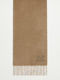 DETAILS Stole with minimalist design, embellished with elegant, tonal embroidered M Monogram detail at the bottom. Stole in fine sable-look pure cashmere yarn Fringed shorter sides Measurements: 190 x 28 cm COMPOSITION AND CARE 100% cashmere. Do not wash; do not bleach; do not tumble dry; cool iron; professionally dry clean perchloroethylene - mild process; do not wet clean.; to be ironed on reverse.; to be ironed with no steam.; iron with a cloth between. Distributed by Max Mara S.r.l., registered office in Reggio Emilia (Italy), Via Giulia Maramotti 4, 42124 (IT)