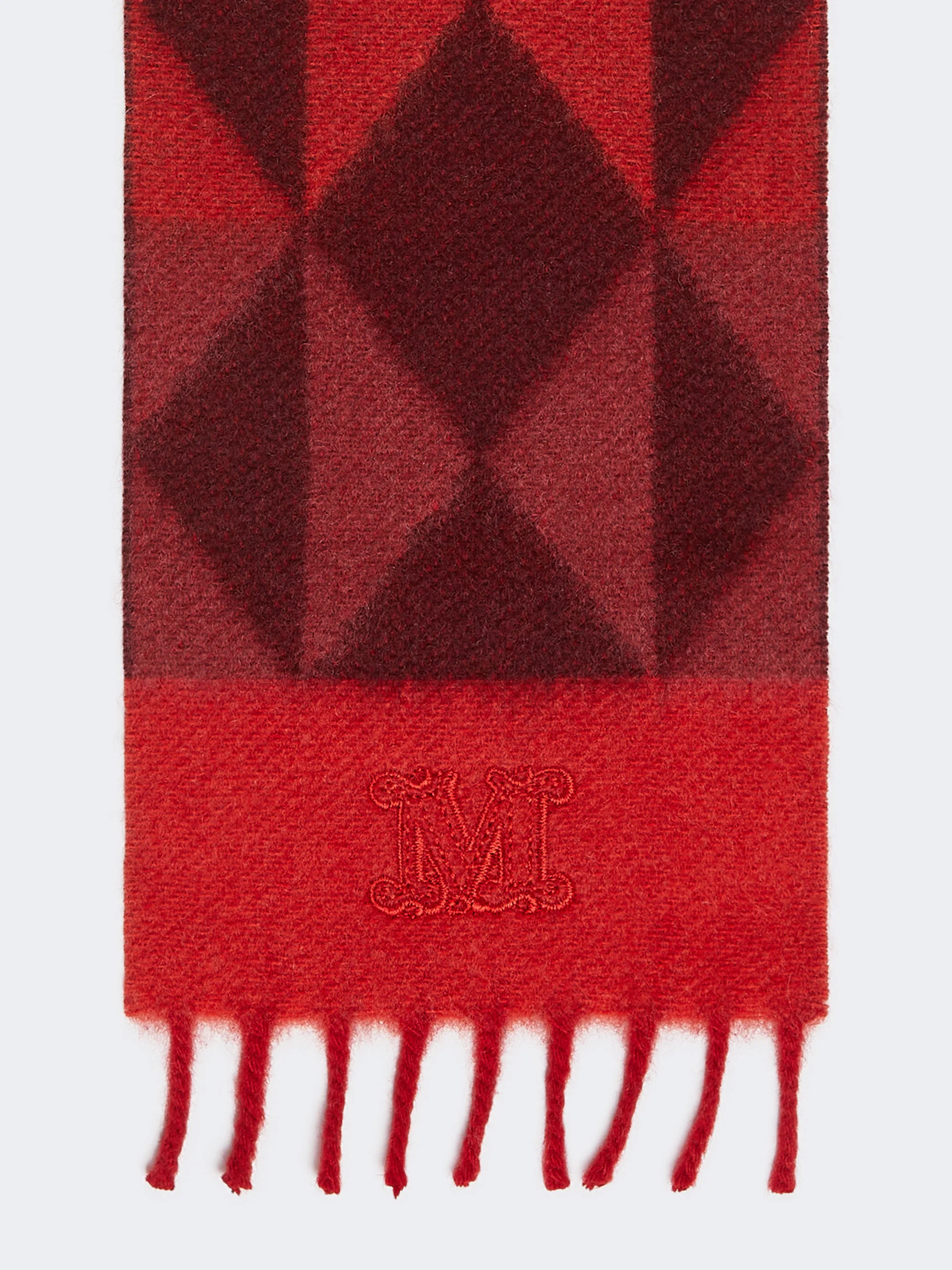 DETAILS Long scarf featuring a refined jacquard-knit geometric pattern. Scarf in double-faced sable-look pure cashmere fabric Embroidered M Monogram logo at the hem Fringed detail at the end Size: 12 x 145 cm COMPOSITION AND CARE 100% cashmere. Do not wash; do not bleach; do not tumble dry; cool iron; professionally dry clean perchloroethylene - mild process; do not wet clean.; to be ironed on reverse.; to be ironed with no steam.; iron with a cloth between. Distributed by Max Mara S.r.l., registered office in Reggio Emilia (Italy), Via Giulia Maramotti 4, 42124 (IT)