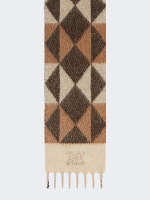 DETAILS Long scarf featuring a refined jacquard-knit geometric pattern. Scarf in double-faced sable-look pure cashmere fabric Embroidered M Monogram logo at the hem Fringed detail at the end Size: 12 x 145 cm COMPOSITION AND CARE 100% cashmere. Do not wash; do not bleach; do not tumble dry; cool iron; professionally dry clean perchloroethylene - mild process; do not wet clean.; to be ironed on reverse.; to be ironed with no steam.; iron with a cloth between. Distributed by Max Mara S.r.l., registered office in Reggio Emilia (Italy), Via Giulia Maramotti 4, 42124 (IT)