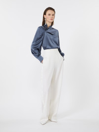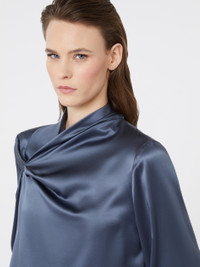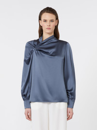 DETAILS Feminine blouse with asymmetrical drop neckline and draped motif on the right shoulder. Heavy pure-silk satin blouse Flowing style Long set-in sleeves Shirt cuff with covered button Unlined COMPOSITION AND CARE 100% silk. Do not wash; do not bleach; do not tumble dry; cool iron; professionally dry clean perchloroethylene - mild process; do not wet clean.; iron with a cloth between. Distributed by Max Mara S.r.l., registered office in Reggio Emilia (Italy), Via Giulia Maramotti 4, 42124 (IT)