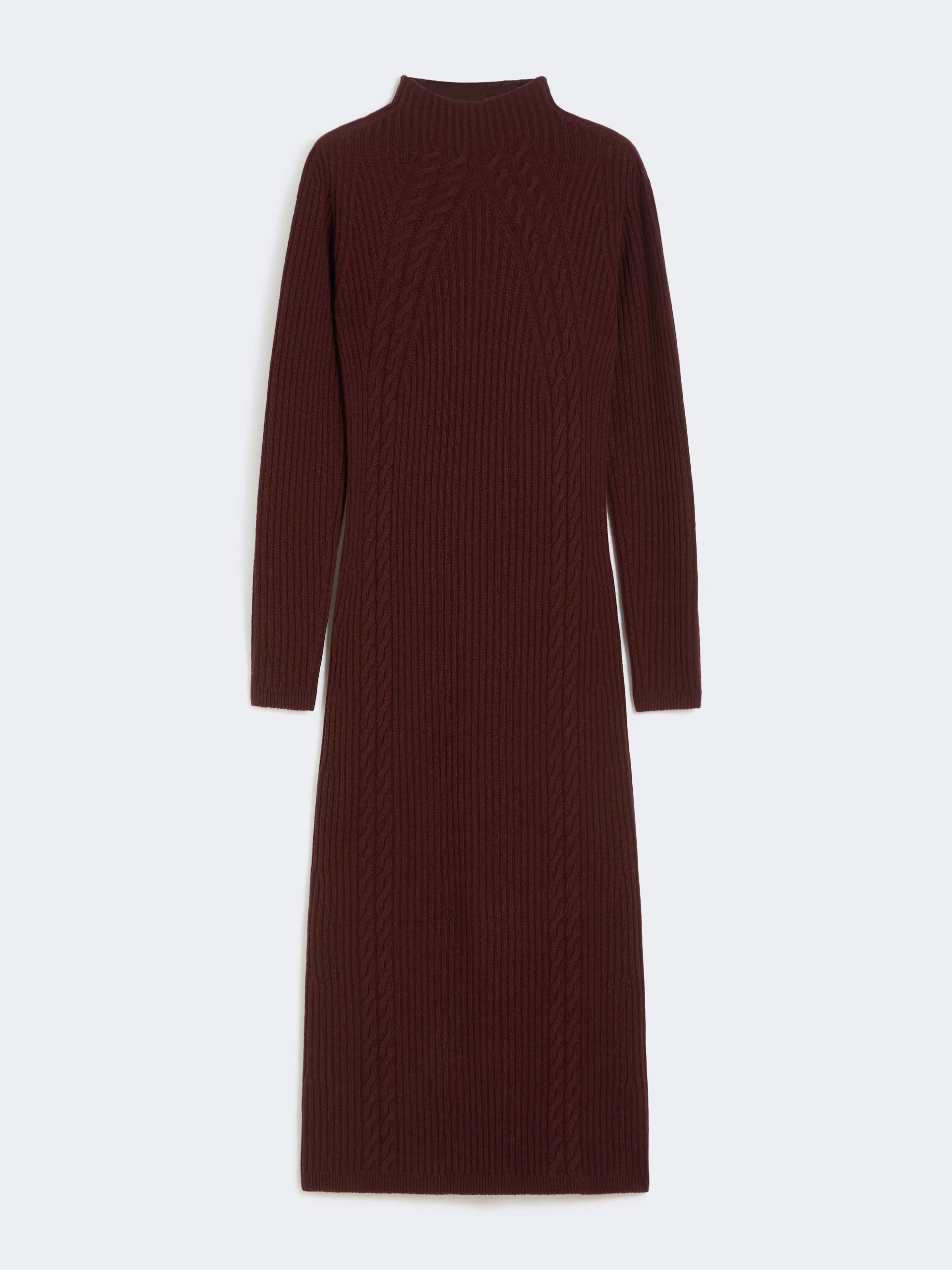 DETAILS Midi dress in a seamless knit with a combination of cable and rib stitches. Wool and cashmere knit dress Figure-hugging Stand collar Long sleeves COMPOSITION AND CARE 70% wool, 30% cashmere. Hand wash cold (40°c max); do not bleach; do not tumble dry; flat drying in the shade; cool iron; professionally dry clean perchloroethylene - mild process; do not wet clean.; iron with a cloth between.; using neutral detergent. Distributed by Max Mara S.r.l., registered office in Reggio Emilia (Italy), Via Giulia Maramotti 4, 42124 (IT)
