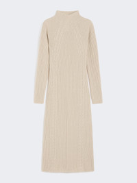 DETAILS Midi dress in a seamless knit with a combination of cable and rib stitches. Wool and cashmere knit dress Figure-hugging Stand collar Long sleeves COMPOSITION AND CARE 70% wool, 30% cashmere. Hand wash cold (40°c max); do not bleach; do not tumble dry; flat drying in the shade; cool iron; professionally dry clean perchloroethylene - mild process; do not wet clean.; iron with a cloth between.; using neutral detergent. Distributed by Max Mara S.r.l., registered office in Reggio Emilia (Italy), Via Giulia Maramotti 4, 42124 (IT)