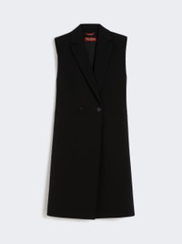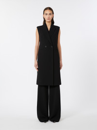 DETAILS Long, sleeveless jacket, distinguished by a double-breasted tailored construction. Cady jacket Straight cut Small lapel collar Low closure with two buttons Welt pockets at the front Lined COMPOSITION AND CARE Fabric 71% triacetate, 29% polyester; lining 70% acetate, 30% polyester. Do not wash; do not bleach; do not tumble dry; cool iron; professionally dry clean perchloroethylene - mild process; do not wet clean.; wash the garment while it is fastened.; do not iron the buttons.; protect buttons before washing.; turn the articles inside out before washing. Distributed by Max Mara S.r.l., registered office in Reggio Emilia (Italy), Via Giulia Maramotti 4, 42124 (IT)