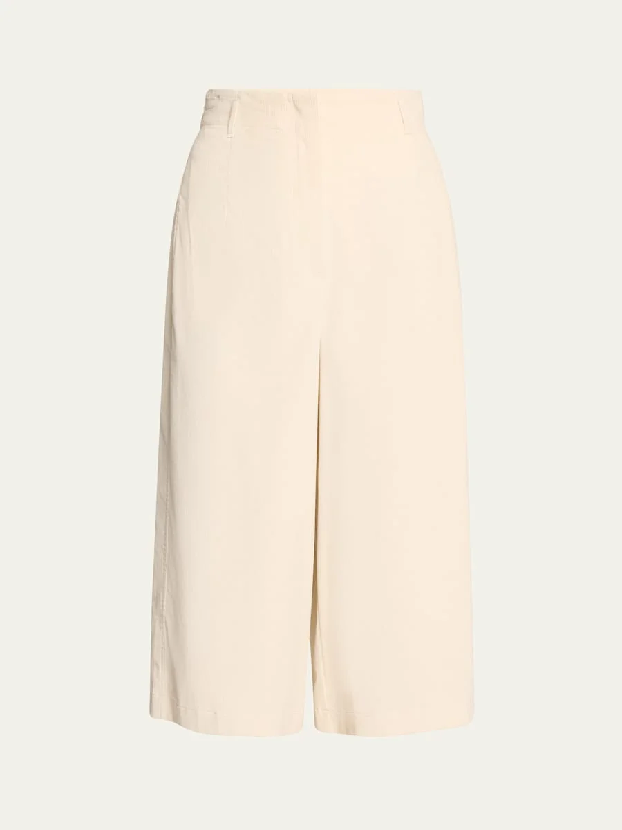 Max Mara "Zenith" corduroy cropped trousers Concealed closure and fly Belt loops Side slip pockets Back welt pockets Midrise sits high on hip Hem falls below the knee Cotton/elastane Made in Italy