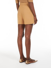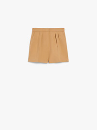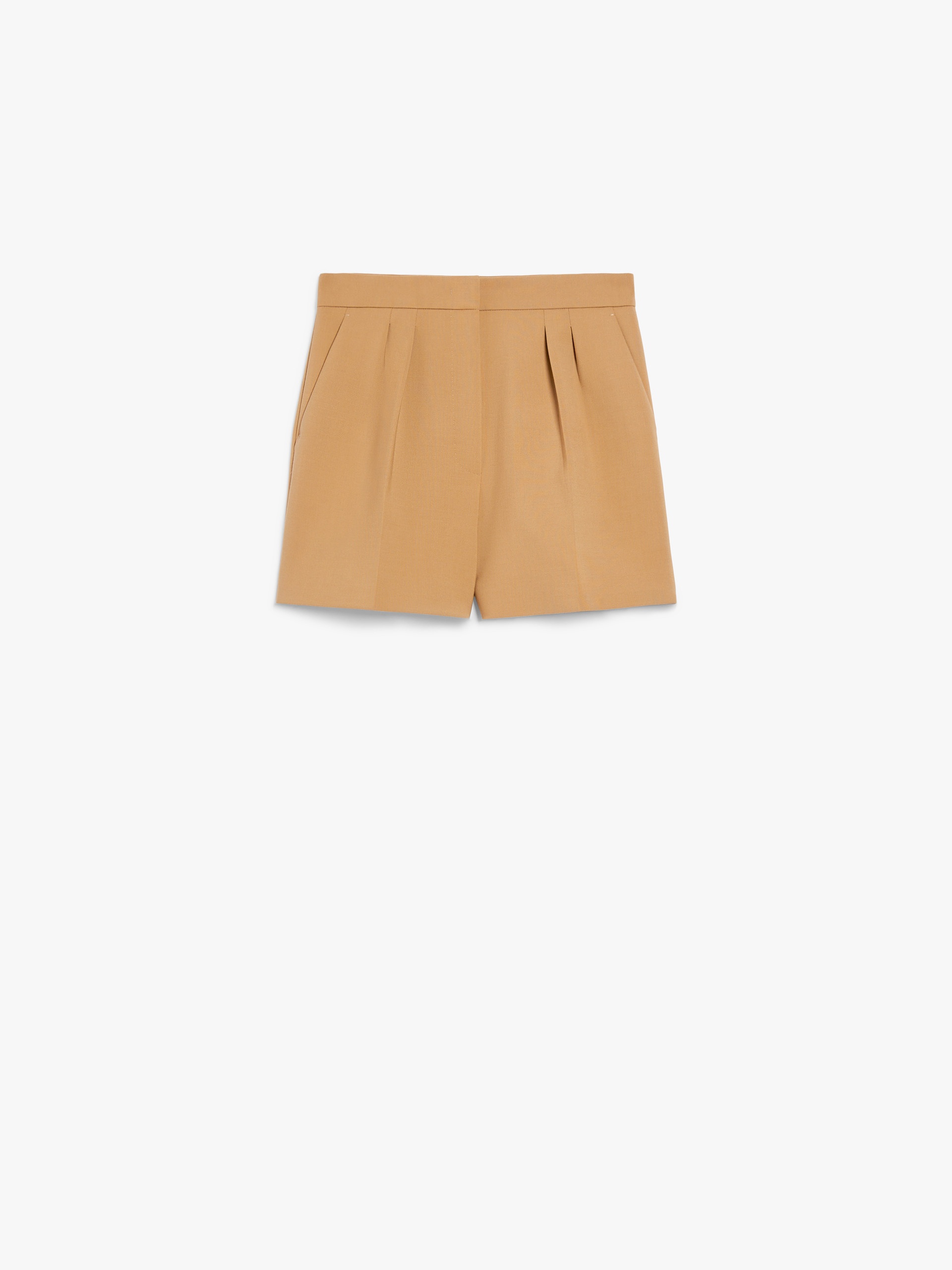 DETAILS Shorts in double stretch wool canvas, characterized by a high-waisted silhouette with double pleats on the front, trouser crease and slanted side pockets. Lined garment fastened with a wide waistband tab, zip fly and small hook. COMPOSITION AND CARE Fabric 96% virgin wool, 4% elastane; - except joining thread; lining 95% acetate, 5% elastane. Do not wash; do not bleach; do not tumble dry; cool iron; professionally dry clean perchloroethylene - mild process; do not wet clean.; protect buttons before washing. Distributed by Max Mara S.r.l., registered office in Reggio Emilia (Italy), Via Giulia Maramotti 4, 42124 (IT)