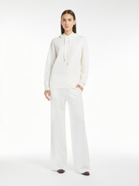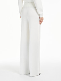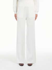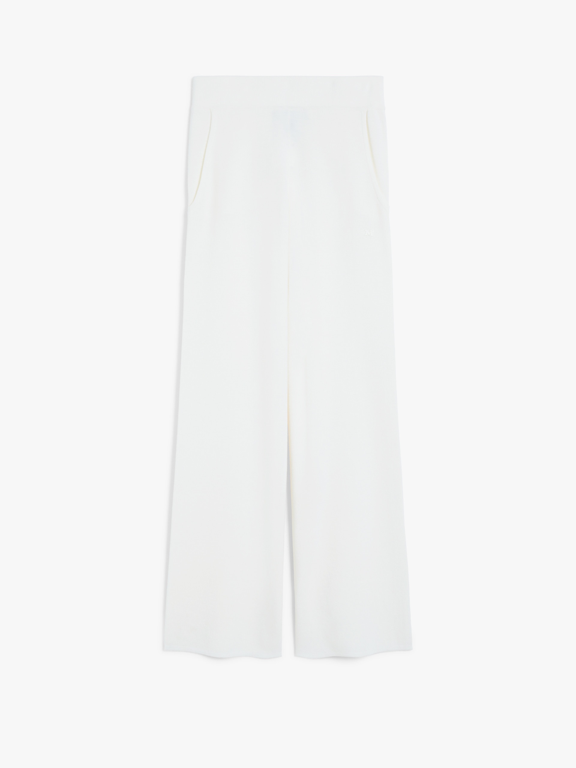 DETAILS Long trousers made from soft pure wool yarn - featuring a wide-leg silhouette, cloth stitch detailing, a ribbed elasticated waist, and slant pockets on the sides. Customised with M Monogram detail applied under the left pocket. COMPOSITION AND CARE Knitted fabric 100% virgin wool; - exclusive of decoration. Hand wash cold; do not bleach; do not tumble dry; flat drying in the shade; cool iron; professionally dry clean perchloroethylene - mild process; do not wet clean.; iron with a cloth between.; using neutral detergent. Distributed by Max Mara S.r.l., registered office in Reggio Emilia (Italy), Via Giulia Maramotti 4, 42124 (IT)
