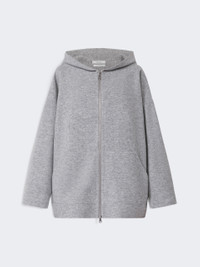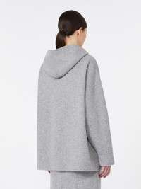 DETAILS Hooded sweatshirt in an oversized fit. Hand-sewn, double cashmere and wool jersey sweatshirt. Long sleeves with dropped shoulders Metal zip fastening on the front Pouch pockets on the front Logo plate on the bottom of the left pocket COMPOSITION AND CARE Jersey fabric 85% virgin wool, 10% cashmere, 5% polyamide; - exclusive of decoration. Do not wash; do not bleach; do not tumble dry; cool iron; professionally dry clean perchloroethylene - mild process; do not wet clean.; iron with a cloth between. Distributed by Max Mara S.r.l., registered office in Reggio Emilia (Italy), Via Giulia Maramotti 4, 42124 (IT)