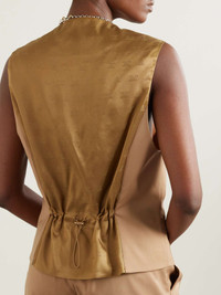 EDITORS'NOTES Max Mara designs each season as an extension of the last, meaning you can seamlessly mix-and-match this 'Zuai' vest with existing pieces in your wardrobe. It's been tailored in Italy from camel wool and has shaping seams on the bodice that emphasize the slightly loose fit. Complete the set with the matching blazer and pants. SIZE & FIT Model measurements: - Fits true to size, take your normal size - Designed for a slightly loose fit, use the adjustable drawcord to cinch in at the back - Mid-weight, non-stretchy fabric - Model is 175cm/ 5'9" and is wearing a UK 8 - Bust: 79cm/ 31" - Waist: 69cm/ 27" - Hip: 92cm/ 36" DETAILS & CARE - Camel wool and satin-jacquard - Button fastenings through front - Fabric1: 100% wool; fabric2: 64% acetate, 36% polyester