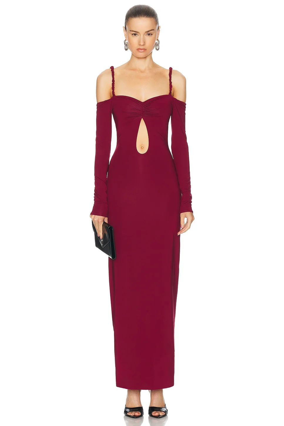 Details - Jersey textile - Imported - Dry clean recommended - Double lined - Pull-on off the shoulder styling - Front cut-out - Back vent - Midweight fabric - Our Style No. MAYF-WD37 - Manufacturer Style No. VT-098-BRG